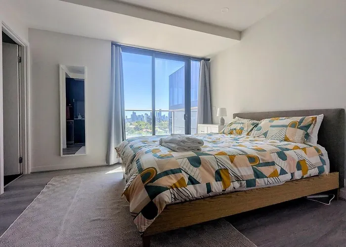 The block-size plaza "Federation Square" is about 10 minutes' drive from this apartment, while the Royal Botanic Gardens Victoria is about 20 minutes' walk from the property. The commanding memorial "Shrine of Remembrance" is 2.4 km from the accommodation.
